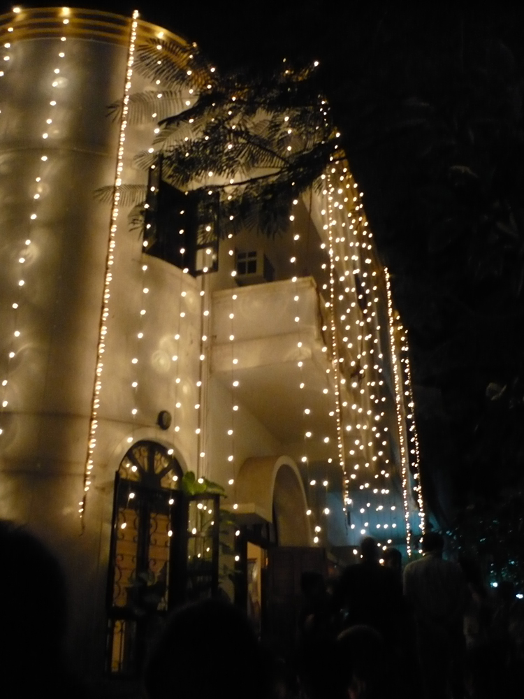 Es gibt lecker Essen vom Grill und ein indisches Buffett veg/non-veg. Wie immer auf solchen Parties lernt man ungezwungen Leute aus aller Welt kennen. Sogar ein Lagerfeuer wird geboten. Als wir um viertel vor eins nach Hause fahren, kommen immer noch neue Gäste. Wie uns erzählt wird, ist es in Bangalore üblich, drei bis vier Parties am selben Abend zu besuchen.