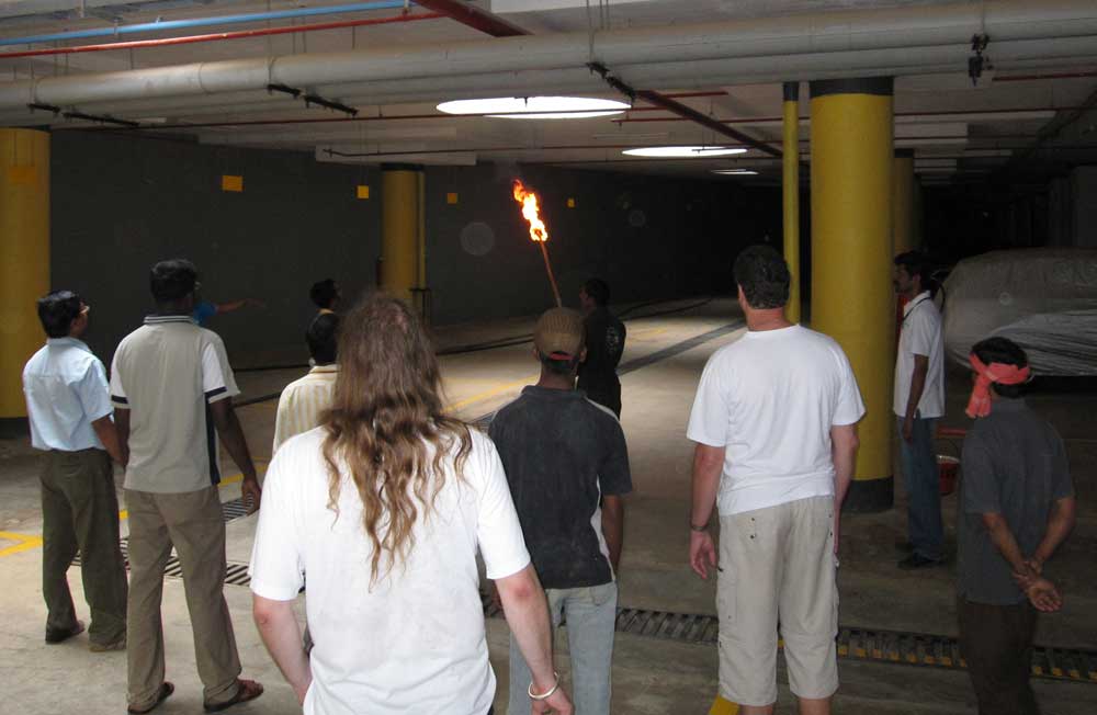 Dann werden wir von einem externen Team durch die technischen Anlagen geführt, wobei sich herausstellt, dass die ganzen Feuerlösch- und Alarmeinrichtungen seit der Gebäudeübergabe (2006) nie wieder geprüft, geschweige denn gewartet wurden!