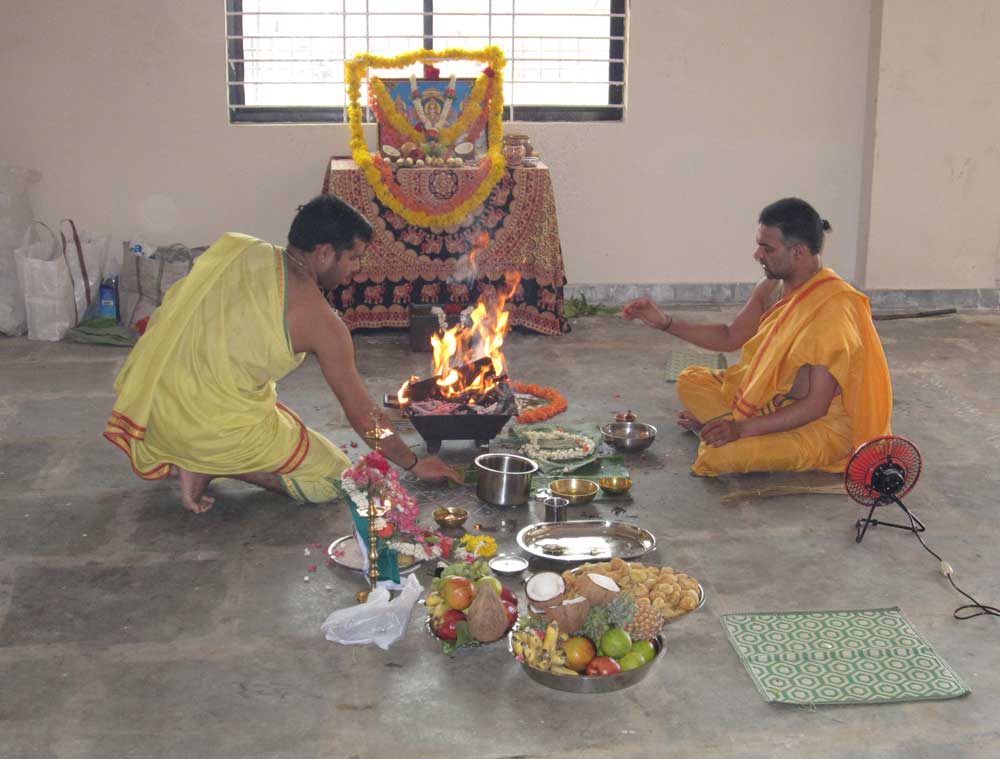 Am Montag war dann Einweihung. Schon am frühen Morgen hatte ein Priester mit seinem Gehilfen einen kleinen Altar im Erdgeschoss aufgebaut und die notwendigen Zeremonien durchgeführt. Die dauern mehrere Stunden. Erst gegen Ende kamen dann die Mitarbeiter und Chefs zum „offiziellen“ Teil dazu und opferten Speisen.