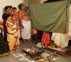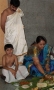 Der Kannada-Kurs ist für 7:45 in der Stadt verabredet, um mit unser Lehrerin Sneha die „Thread Ceremony“ (Upanayana) ihres 8-jährigen Cousins Nikhil zu besuchen. Ich soll irgendetwas indisches anziehen und in Ermangelung eines Saris ziehe ich meinen schicksten seidenen Salwar-Kameez aus dem Schrank. Meine beiden Mitstudentinnen sagen im letzten Moment ab, und so bin ich das einzige Nicht-Familienmitglied und werde wie ein Ehrengast behandelt. Alle wollen wissen, wer ich bin, und sind höchst beeindruckt, dass ich Kannada lerne!
