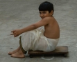Der 8jährige Nikhil ist seit 3 Uhr nachts auf den Beinen, da die zentrale Zeremonie für 9:30 bis 10:30 angesetzt wurde (die passende Zeit legt ein Astrologe fest, das passiert auch bei Hochzeiten und allen anderen wichtigen religiösen Zeremonien) und vorher noch diverse andere Rituale vorgenommen werden müssen. Wir kommen gerade rechtzeitig an, um der Kopfrasur beizuwohnen. Dabei wird der Kopf geschoren, als Zeichen dafür, dass keinerlei Eitelkeit um die Frisur