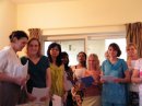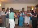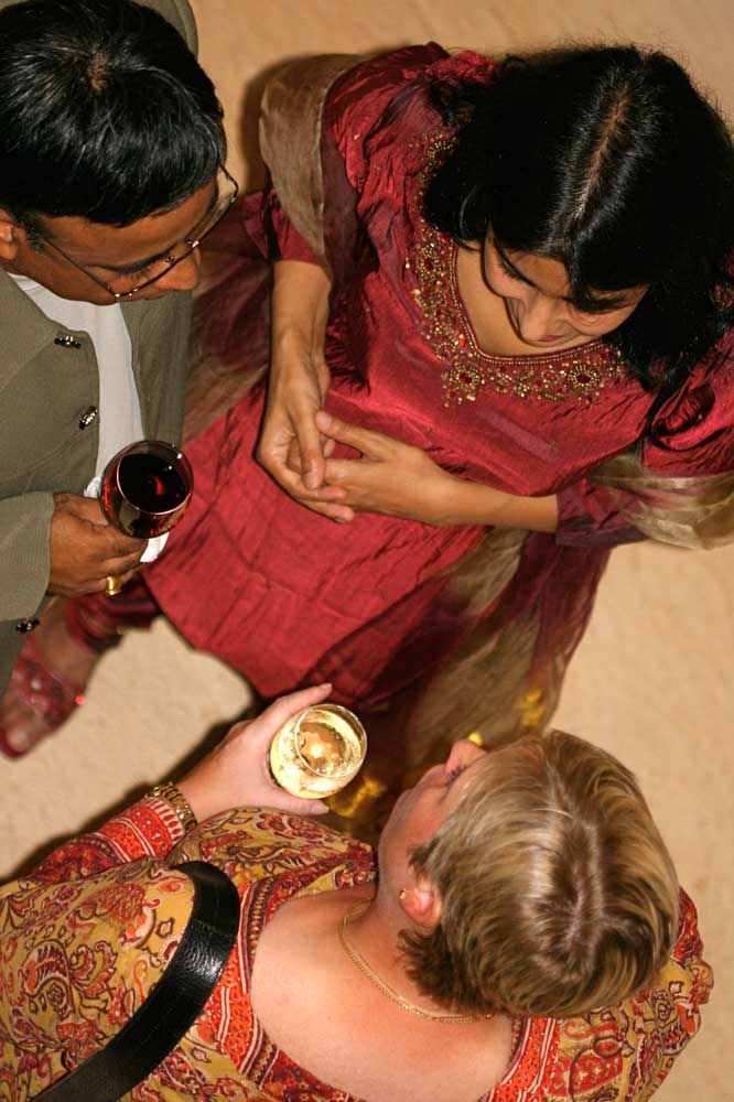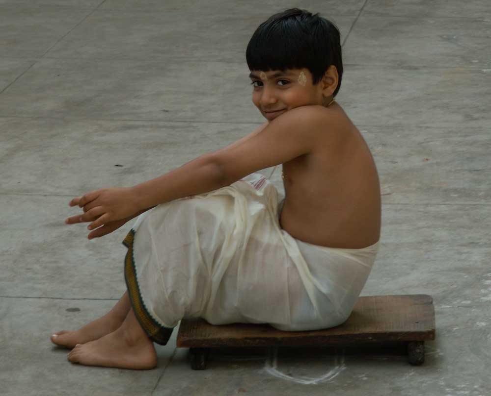 Der Kannada-Kurs ist für 7:45 in der Stadt verabredet, um mit unser Lehrerin Sneha die „Thread Ceremony“ (Upanayana) ihres 8-jährigen Cousins Nikhil zu besuchen. Ich soll irgendetwas indisches anziehen und in Ermangelung eines Saris ziehe ich meinen schicksten seidenen Salwar-Kameez aus dem Schrank. Meine beiden Mitstudentinnen sagen im letzten Moment ab, und so bin ich das einzige Nicht-Familienmitglied und werde wie ein Ehrengast behandelt. Alle wollen wissen, wer ich bin, und sind höchst beeindruckt, dass ich Kannada lerne!