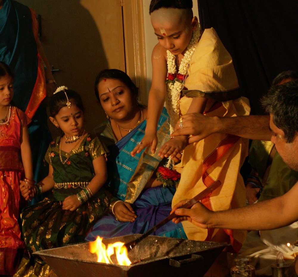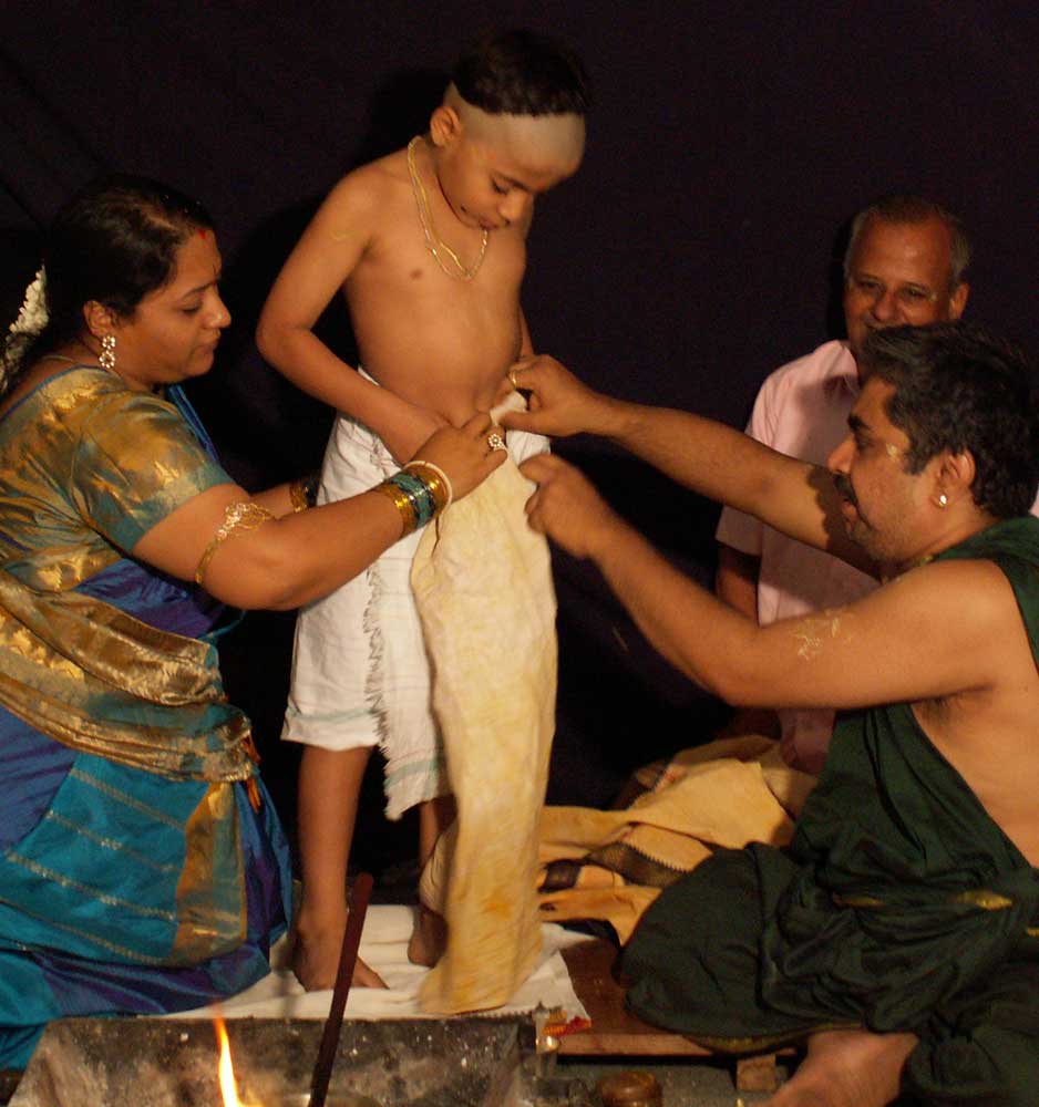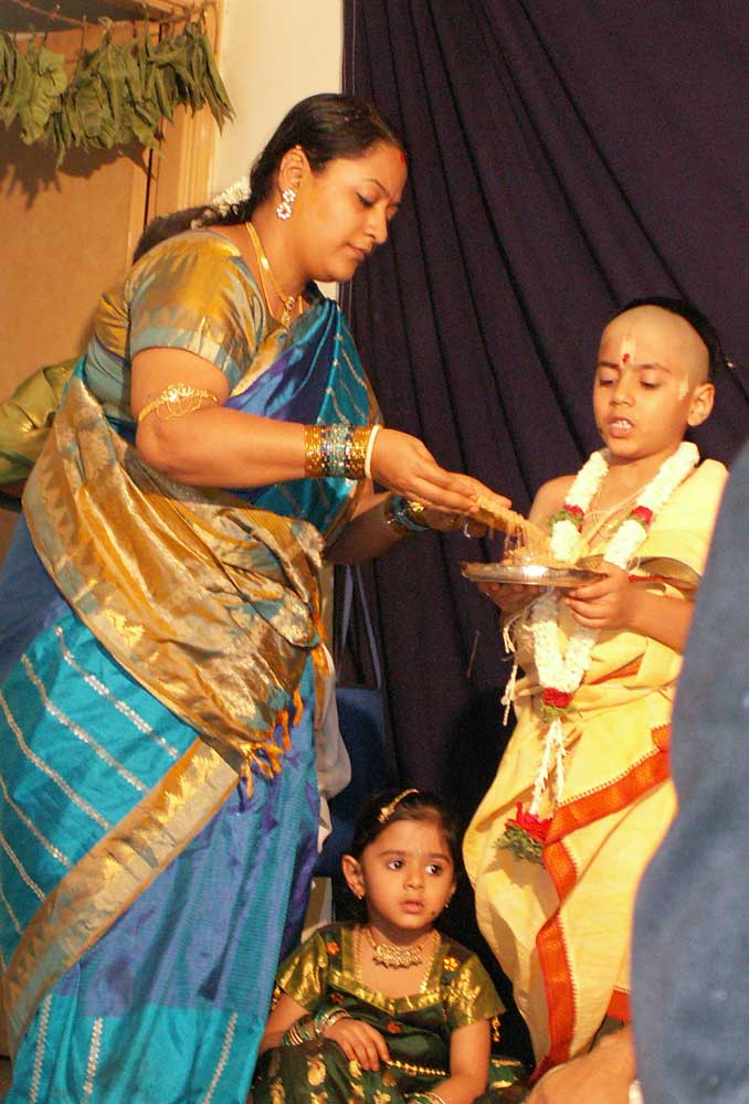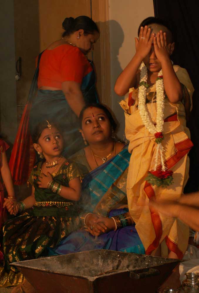 Die Zeremonie um den „heiligen Faden“ der Brahmanen gilt als wichtiger Schritt des Eintritts ins Erwachsenenlebens und ist der traditionelle Beginn der religösen Studien. Sie findet im Alter zwischen 8 und 14 statt, der optimalen Aufnahmefähigkeit für neu erlerntes.