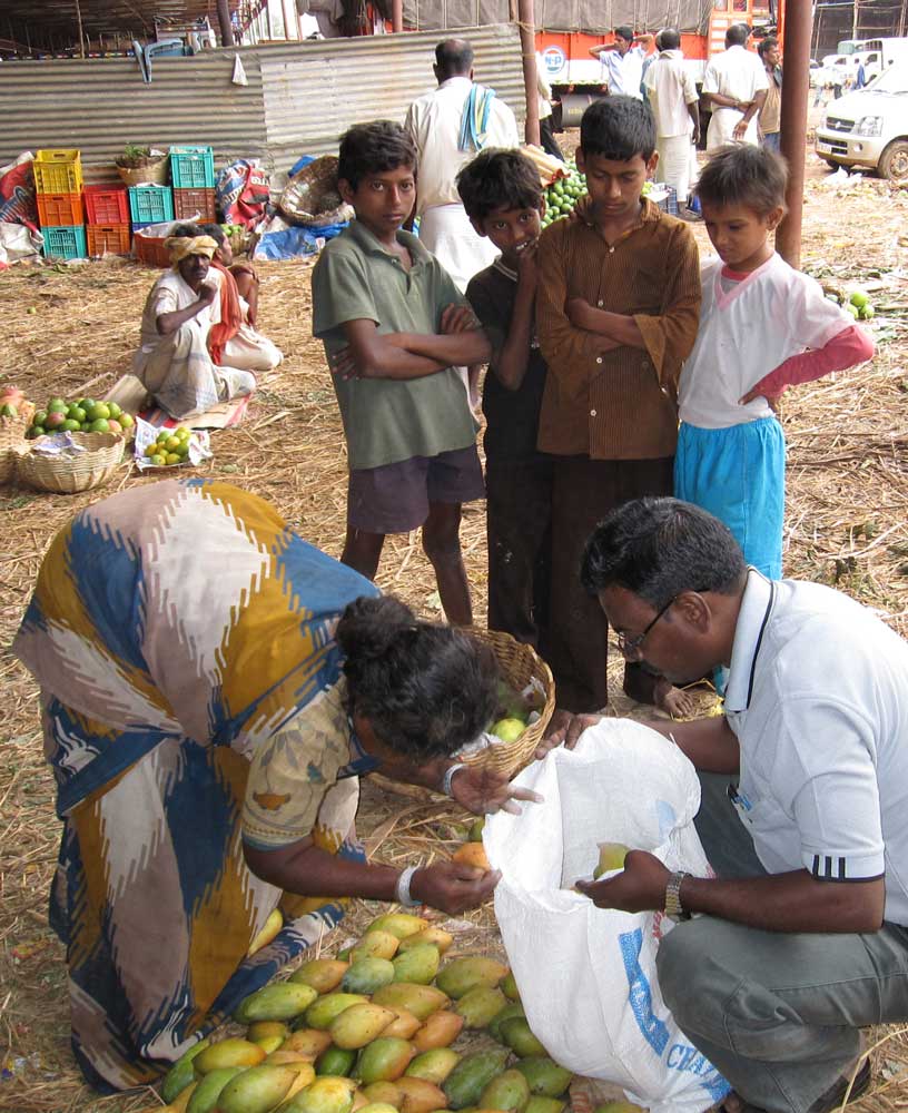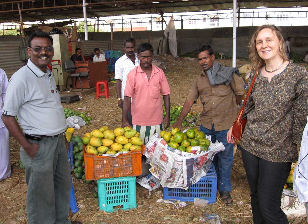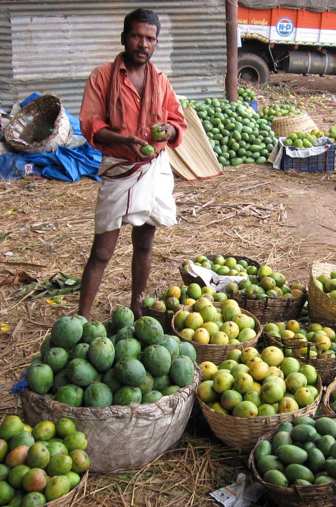 Unser Fahrer will uns schon seit Wochen endlich mal den Mango-Großmarkt zeigen, der ganz in der Nähe unserer Wohnung liegt. Es ist der zentrale Mango-Umschlagplatz für den ganzen Bundesstaat Karnataka! Was ihr auf den Bildern (zum Glück) nicht seht, ist der Geruch – der Boden ist übersät mit vermatschten Mangos. Denn mit den nicht verkauften Mangos werden die Schlaglöcher auf den Wegen zwischen den Ständen aufgefüllt… Aber zum Glück kommt der Duft frischer Mangos doch noch ein bisschen durch!