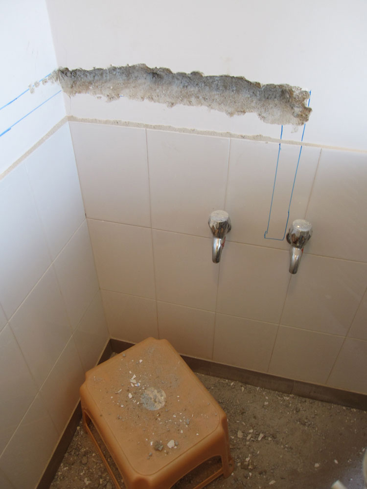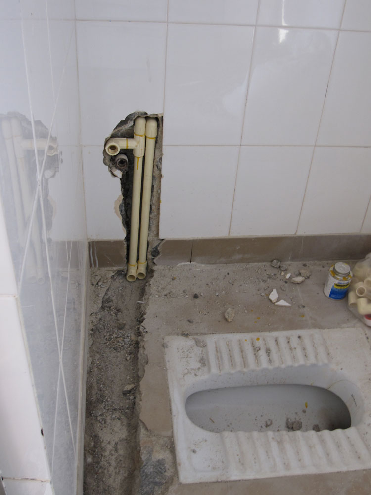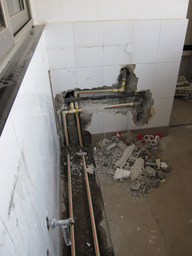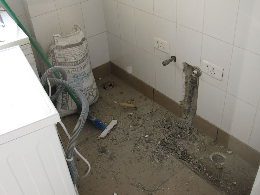 Am Montagmorgen bin ich dann ab 9:30 in Hab-Acht-Stellung für den um 10:00 angekündigten Klempner. Als sich um halb 11 noch keiner gerührt hat, frage ich mal nach. Ach, der ist gerade Material einkaufen. Na gut. Eine halbe Stunde später kommt er dann, bringt auf Anfrage auch den Chef mit (der mir dann das ganze auf englisch erklären kann, die Handwerker selbst sprechen nämlich nur Hindi, Kannada oder sonstige mir nicht geläufige Sprachen). Weil es sehr aufwändig wäre, das eigentliche Leck zu suchen, planen sie, stattdessen einfach eine neue Leitung zu verlegen und die alte, defekte, dann zu schließen. Fertig.