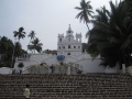 Ein bisschen Kultur sollte aber auch dabei sein, daher verbringen wir die erste Nacht in Goas Hauptstadt, Panaji. Der Reiseführer „Lonely Planet“ preist die Stadt als „unbedingt sehenswert, auf jeden Fall mehrere Tage einplanen“. Das vom Hotel versprochene Taxi wartet allerdings nicht auf uns. Im Hotel wissen sie von nichts. Naja, stehen ja genügend rum, es gibt sogar einen Prepaid-Schalter. Der kleinste aller Suzukis hat allerdings keine Klimaanlage, naja, wir müssen ja heute nicht mehr repräsentieren. Das Zimmer ist in einer netten renovierten Kolonialstil-Villa, allerdings stehen gleich zwei riesige Betten drin und ansonsten kann man sich kaum noch drin bewegen. Dafür etwas overpriced. Wir sind sogar noch früh genug, um noch Frühstück zu bekommen.