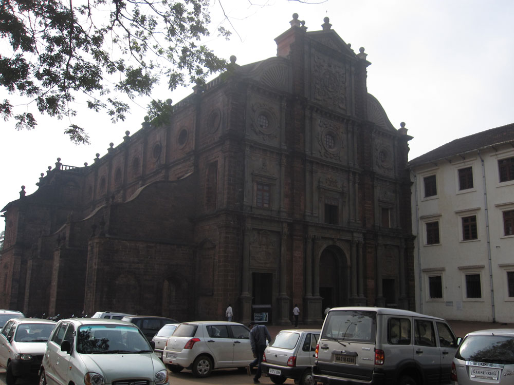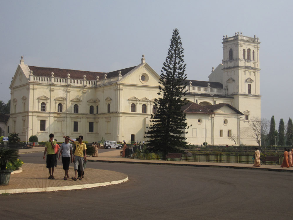 Ein bisschen Kultur sollte aber auch dabei sein, daher verbringen wir die erste Nacht in Goas Hauptstadt, Panaji. Der Reiseführer „Lonely Planet“ preist die Stadt als „unbedingt sehenswert, auf jeden Fall mehrere Tage einplanen“. Das vom Hotel versprochene Taxi wartet allerdings nicht auf uns. Im Hotel wissen sie von nichts. Naja, stehen ja genügend rum, es gibt sogar einen Prepaid-Schalter. Der kleinste aller Suzukis hat allerdings keine Klimaanlage, naja, wir müssen ja heute nicht mehr repräsentieren. Das Zimmer ist in einer netten renovierten Kolonialstil-Villa, allerdings stehen gleich zwei riesige Betten drin und ansonsten kann man sich kaum noch drin bewegen. Dafür etwas overpriced. Wir sind sogar noch früh genug, um noch Frühstück zu bekommen.