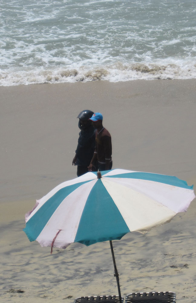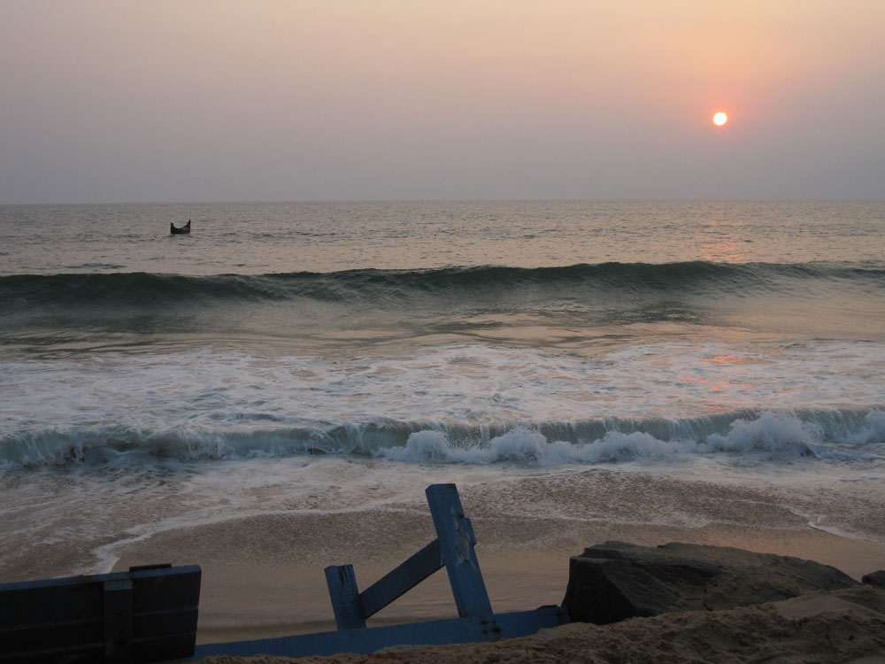 Am nächsten Morgen werden wir allerdings von Baggergeräuschen geweckt und während des Frühstücks wird direkt unter der Hotelterrasse der Strand bearbeitet. Auf unsere Frage, wie lange das wohl dauert, antwortet der Kellner ziemlich ahnungslos „gestern war er noch nicht da“… Nix für ein ruhiges, erholsames Wochenende! Zudem warten wir eine geschlagene halbe Stunde auf unser indisches Frühstück, und dann ist es auch noch richtig schlecht. Sollen sie es doch gar nicht erst in die Karte aufnehmen, wenn hier keiner Dosas zubereiten kann!