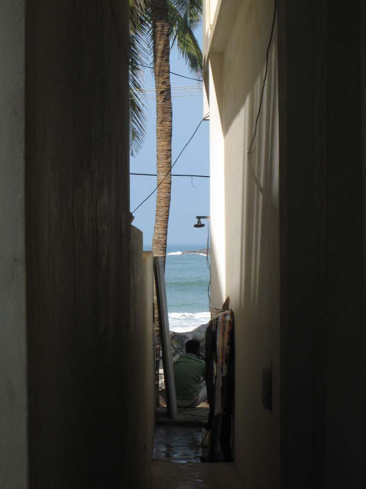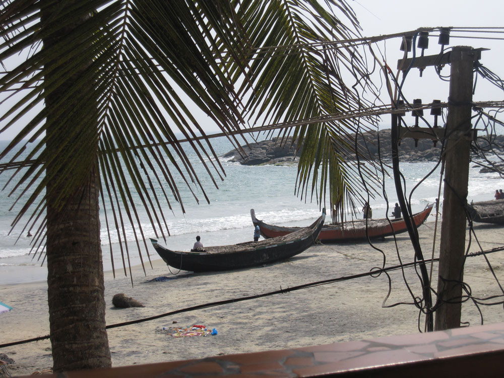 Also flugs im Internet nach Alternativen gesucht und uns für eine Empfehlung unserer deutschen Nachbarn in Bangalore entschieden. Ein nettes Resort, zwei Strände weiter nördlich. Da geht es auch nicht ganz so touristisch zu wie am Lighthouse Beach, wo man ausschließlich Touristen und Händler trifft und in jeden Laden beinahe reingezogen wird. „Was zu rauchen“ bekommen wir auch mehrmals angeboten.