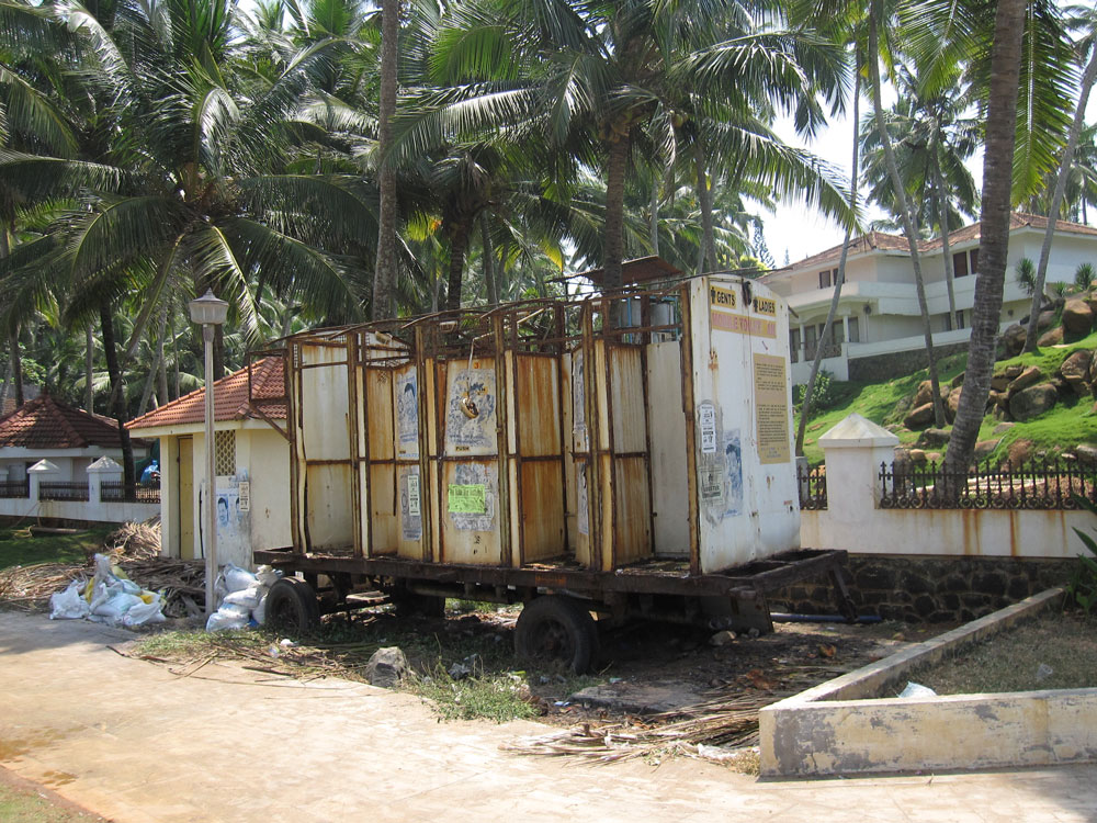 Unser einziges Problem ist, Tender Coconut (grüne Kokosnuss) zum Trinken zu erstehen. Die hängen doch an jeder Palme, und der ganze Strand ist voll von denen!? Wie wir später herausfinden, herrscht jedoch in Kerala ein Mangel an Kokosnusspflückern. Zu gefährlich, und wegen der hier vorbildlich organisierten Schulpflicht sowie dem geringen gesellschaftlichen Ansehen lassen selbst die Pflücker ihre eigenen Kinder diesen Beruf nicht mehr wählen. Tja, dann müssen wir uns da wohl gedulden, bis wir wieder in Bangalore sind… bisher sind auch alle Versuche gescheitert, diese Arbeit von Affen oder Erntemaschinen erledigen zu lassen, oder Hebebühnen etc einzusetzen. Den richtigen Reifegrad zu erkennen braucht viel Erfahrung, und schweres Gerät kommt wegen des sandigen Bodens nicht in Frage.