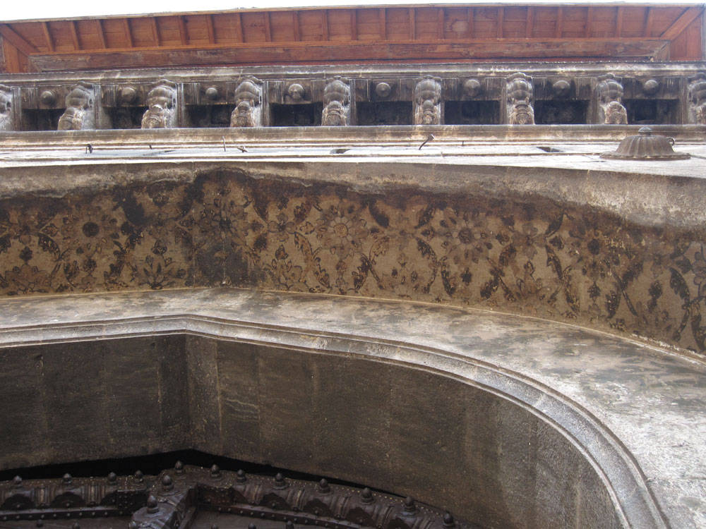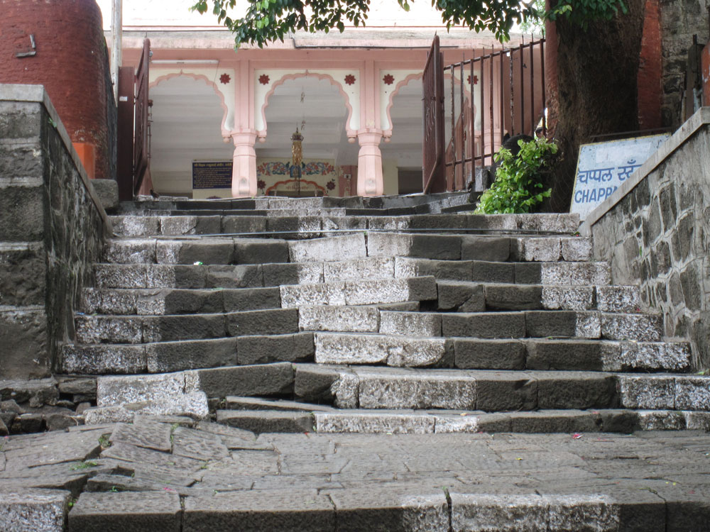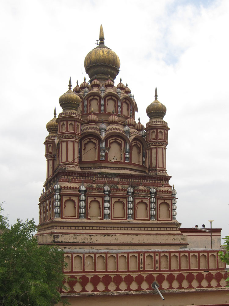 Zum Beispiel der Parvati-Tempel. Ziemlich viele Stufen. Zum Glück ist es erst 10 Uhr morgens und die Sonne versteckt sich immer wieder, aber trotzdem eine sehr schweißtreibende Angelegenheit. Oben hat man eine tolle Aussicht, man kann sogar auf einer Mauer oben außenrum laufen (und dort heimlich ein paar Bilder machen, was in Tempeln sonst nicht so gern gesehen ist). Leider sind die Beschriftungen überwiegend auf Marathi. Immerhin ein englisches Schild klärt über den Bauzeitpunkt auf und dass in jeder der vier Ecken eine Götterstatue steht, davon eine die namensgebende Parvati.