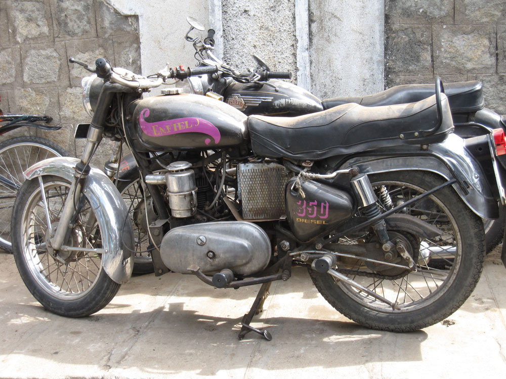 Nachmittags gehen wir auf die Suche nach Diesel-Enfields. Marcus‘ Kollege möchte unbedingt eine haben und nach Deutschland exportieren. Wir klappern mit Hilfe unseres Fahrers alle Enfield-Läden in der hiesigen Motorradmeile ab. Leider keine brauchbare Diesel-Maschine dabei.