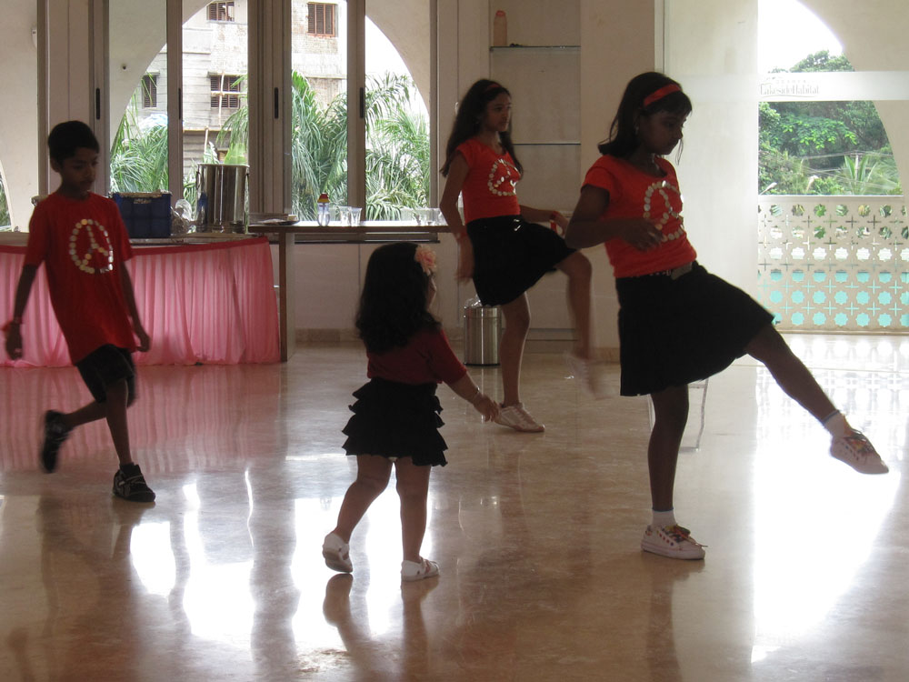 Mit 6 Kindern hatte Fitnesslehrer Praveen mehrere Tänze einstudiert und das war echt gut und sehr lustig. Ein zweijähriges Nachbarskind hat sich dazugestellt und begeistert alles nachgemacht, so ein süßer Fratz! Wird bestimmt mal ’ne große Tänzerin.