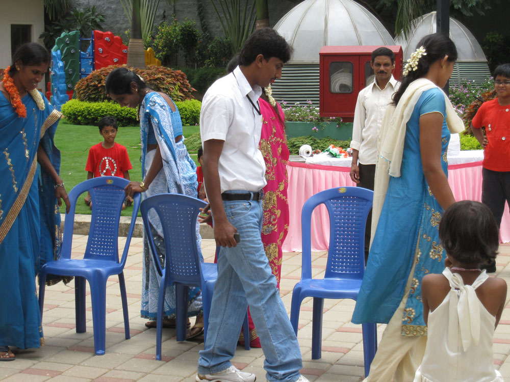 Und eine weitere Neuerung, die Hausangestellten und deren Kinder durften diesmal auch spielen (natürlich in einer extra Runde, nach den Bewohner-Kindern und Bewohnern) und in jeder Gruppe gab es Preise. Die Bewohner-Kinder bekamen allerdings große bunte glitzernde Päckchen und die Angestellten-Kinder Umschläge mit wahrscheinlich nochmal Geld oder Gutscheinen. Naja. Ist halt immer noch Indien.
