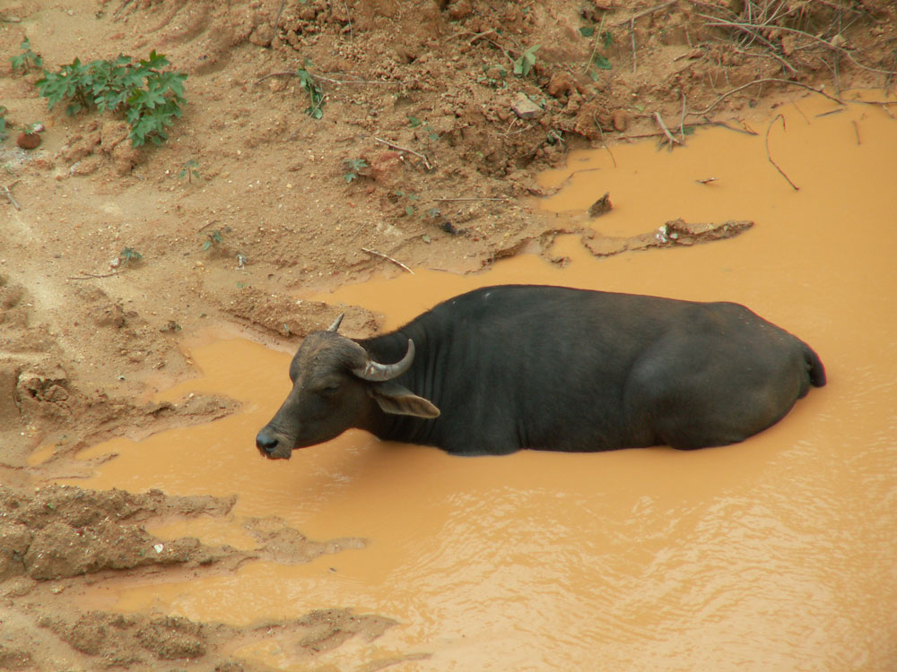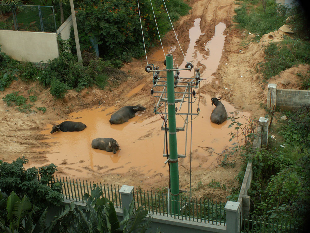 Hab ich eigentlich schon erwähnt, dass unser Hochhaus mitten in einem Dorf steht??? Wasserbüffel sind das wahrscheinlich nicht, einfach irgendwelche Rindviecher halt…
