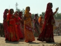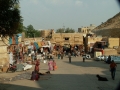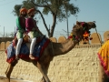 Nachmittags gehts in die Wüste, bzw. – wir sind ja mittendrin – in die Sanddünen; sonst ist das hier nämlich eher Steppe mit jeder Menge Büschen und sonstigen Pflanzen. Ungefähr eine Stunde führt uns ein Kameltreiber vom Parkplatz zu den Dünen (erwartungsgemäß mit mehrern hundert anderen Touristen aus aller Welt und Indien), aber immerhin verschafft er uns einen Platz in der ersten Reihe mit freiem Blick auf den erhofften Sonnenuntergang. Vorher müssen wir uns noch gegen singende Zigeunergruppen, aufdringliche Getränkeverkäufer , schreckliche Flötenspieler und sonstige Touristen-Nepper wehren, aber da die meisten Touristen in dieser Gegend direkt aus dem Flieger fallen, ohne vorher irgendeine Ahnung von Indien zu haben, ist das nicht weiter verwunderlich…