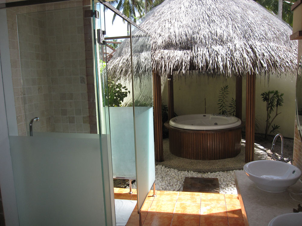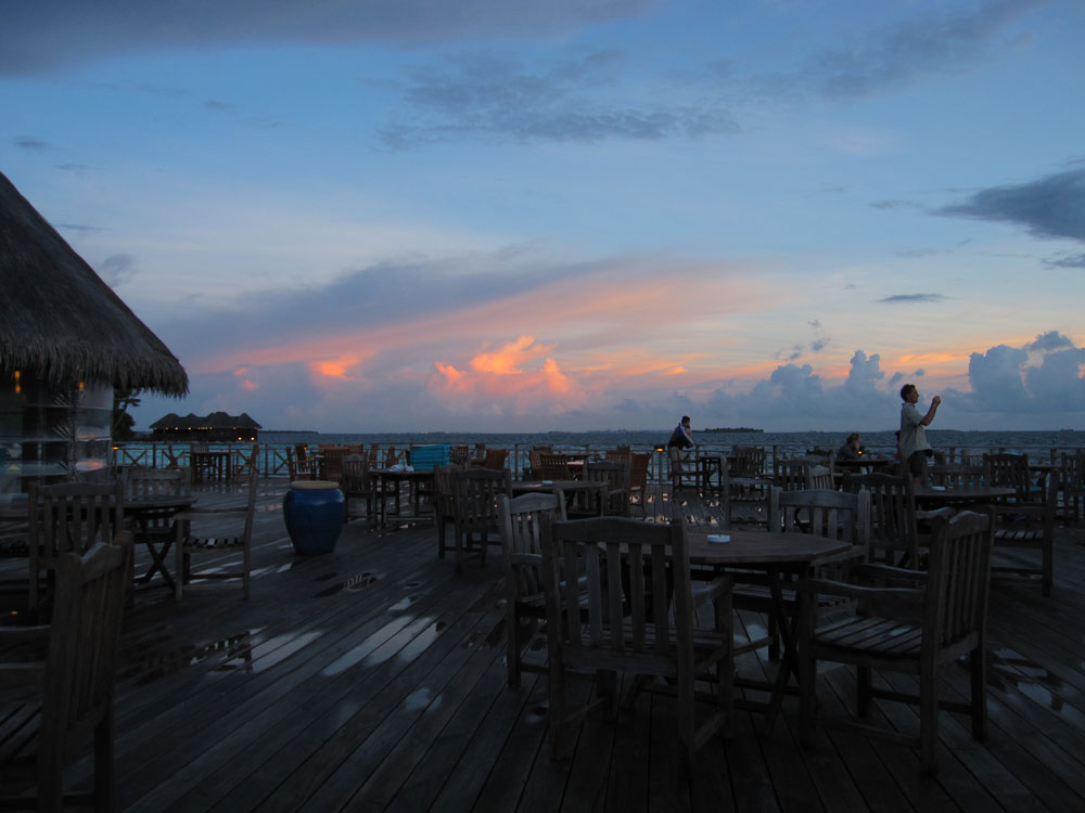 Einchecken, Zimmer beziehen und dann erstmal den Strand besichtigen. Wir laufen fast um die ganze Insel (wie wir später feststellen) und wieder zurück, und das bei einsetzendem Nieselregen! Egal, es ist so warm und wir haben eh nur die Badeklamotten an.