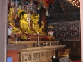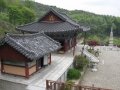 Unterwegs auf der Insel sind wir noch zu einem der zahlreichen Tempel gefahren, ganz am Ende eines idyllischen Tals – vorbei an einem Windradmuseum (leider „under renovation“), einem Stausee und einem Schmetterlingshaus (leider geschlossen). Man musste noch ein Stück den steilen Berg hochlaufen, aber es ging durch einen wunderschönen Wald, und die steileren Wege sind in Korea immer mit Stufen ausgestattet. Die Tempelgebäude stammen aus dem 17. Jahrhundert.