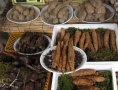Außerdem gibt es rund um die Insel natürlich jede Menge Meer und kleine Fischerhäfen. Zu essen gibt es demnach viel rohen Fisch (wie japanisches Sashimi, lecker) und alle möglichen sonstigen Meeresfrüchte – auch roh! Nicht unser Geschmack. Einfach zu glibberig. Wir vergessen dummerweise meistens, die Speisen VOR dem Essen zu fotografieren!