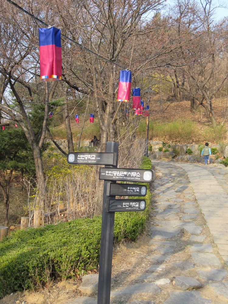 Diesen Samstag haben wir uns mit einer Koreanerin (die ich im SIWA Frauenclub kennengelernt habe) und ihrem amerikanischen Mann verabredet. Einfach mal zum Kaffee treffen, kennenlernen mit den Männern und dann vielleicht noch ein bisschen in der Nähe spazierengehen. Mit der U-Bahn brauchen wir eine gute Stunde in den Norden von Seoul. Wir unterhalten uns sehr angeregt über die Unterschiede der Kulturen, alle möglichen Auslandserfahrungen, koreanisches Essen und die Sprache natürlich, und gehen schließlich auch noch zusammen das schöne Wetter genießen.