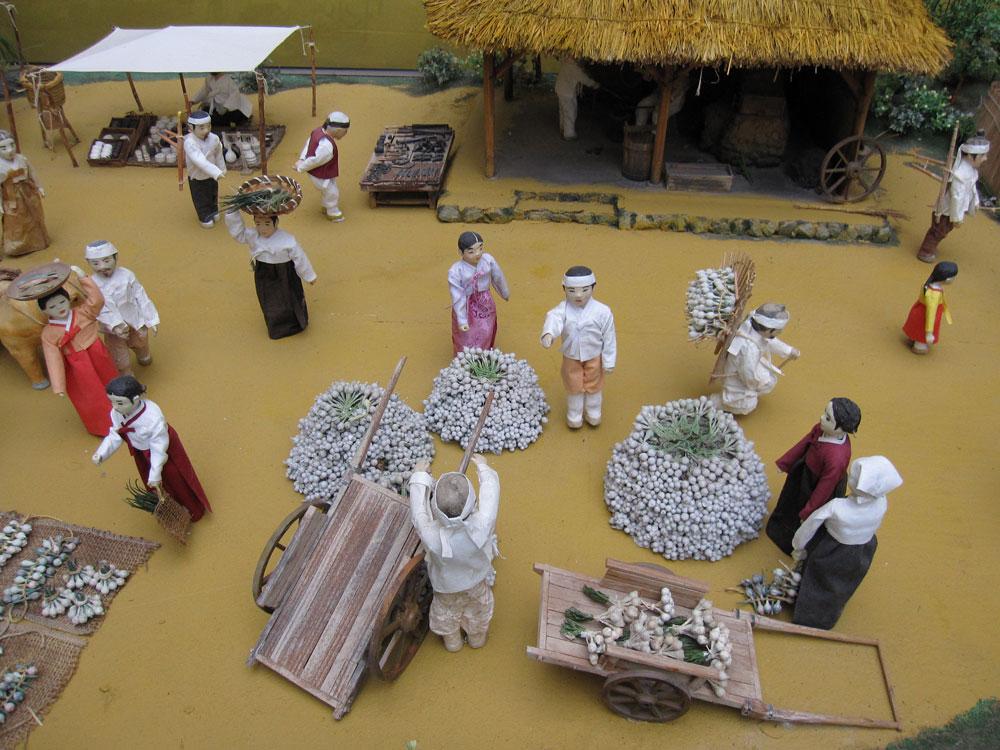 Die Insel Namhae ist neben der schönen Küstenlandschaft vor allem für Knoblauch berühmt. Es gibt ein sehenswertes Knoblauch-Museum mit Gewächshäusern und Beeten, daneben eine Knoblauch-Forschungseinrichtung und natürlich auch Läden mit Spezialitäten wie fermentierter Knoblauch (schwarze Zehen, süßlich, überraschend lecker), Knoblauchextrakt (seeehr gesund, schmeckt auch so) oder Knoblauchbonbons (keine Angst, wir bringen keine mit!) .