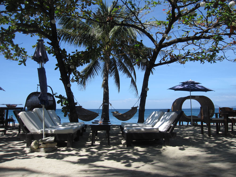 Der Service ist absolut erstklassig. Es schleicht nicht ständig jemand um einen herum (das war in indischen teuren Hotels oft furchtbar), aber sobald man einen Fuß in der Sonne hat, oder sich am Liegestuhl zu schaffen macht, kommt sofort jemand zu Hilfe und justiert den Sonnenschirm, holt bei Bedarf auch weitere Schirme dazu, sichert die Ständer mit Felsbrocken und verschwindet dann wieder. Getränke bestellen kann man bei jedem Mitarbeiter (oder Chef), der gerade vorbeiläuft. Die ganze Anlage wird permanent gepflegt und das Zimmer immer dann geputzt, wenn man es sich eindeutig längere Zeit auf der Sonnenliege bequem gemacht hat.