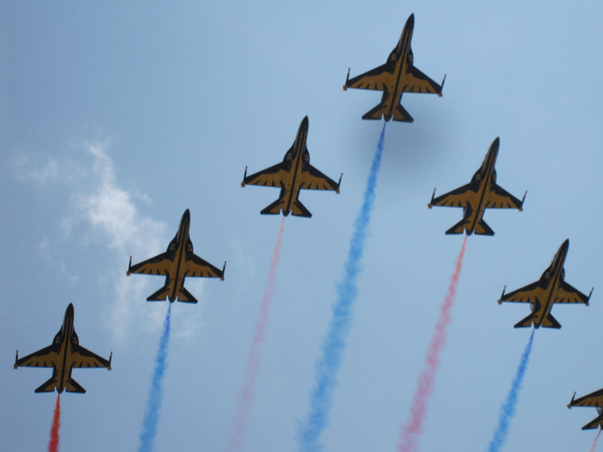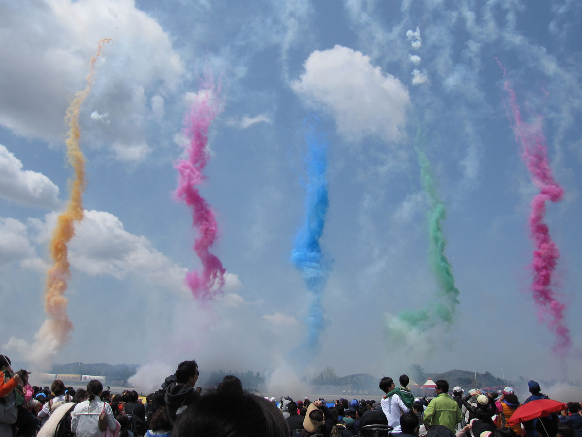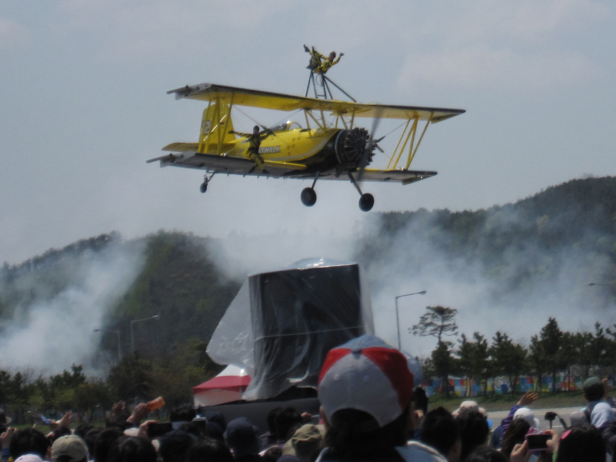 Eine Flugschau nur eine Stunde Autofahrt von unserem Wohnort, das war doch mal ein gutes Feiertagsprogramm. Allerdings sind wir dann doch lieber mit U-Bahn und Taxi hingefahren. Die koreanische Luftwaffe hat mit den „Black Eagles“ eine eigene Jet-Kunstflugstaffel und Breitling hatte sein Jet-Kunstflugteam gerade auf Asientournee. Auch die langsameren Fluggeräte waren sehenswert, vor allem die (außen auf dem Flugzeug herumturnenden) Wingwalkertruppe „Catwalk“.